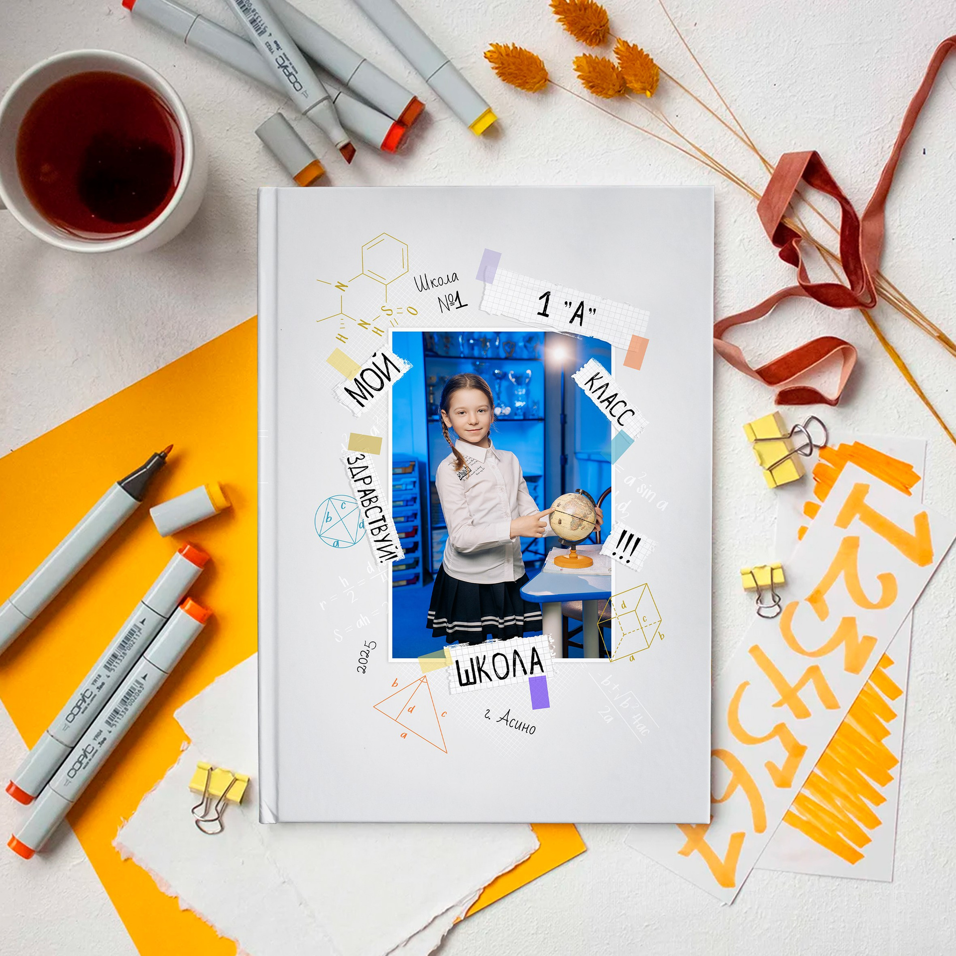Яркий индивидуальный портрет со школьной атрибутикой в печатном виде в форматах А4 — 1шт, и 2 фотографии 10×15